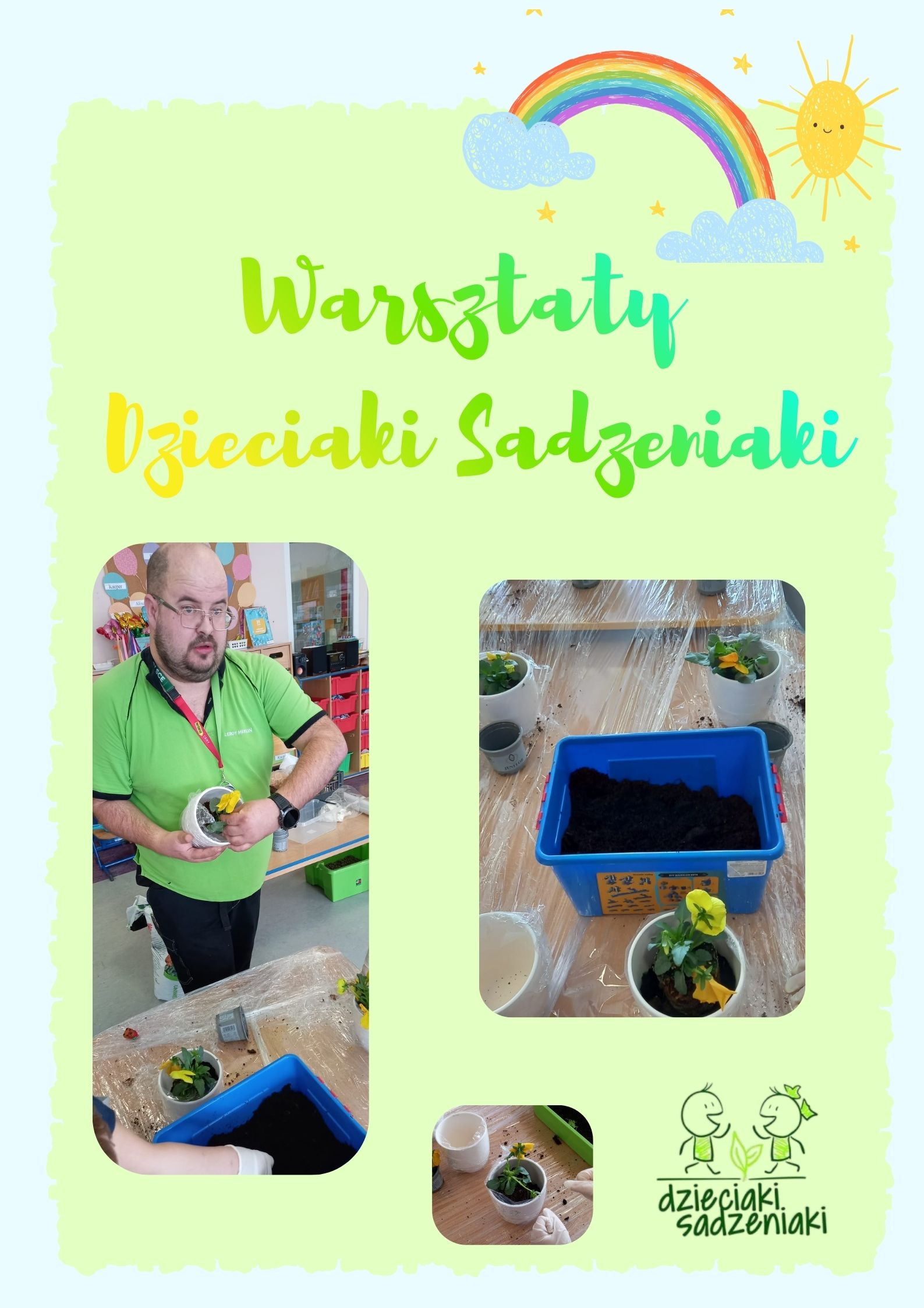 20 marca nasze przedszkole powitało wiosnę wyjątkowo radośnie. Przedszkolaki wzięły udział w warsztatach „Dzieciaki Sadzeniaki”, organizowanych przez firmę Leroy Merlin.