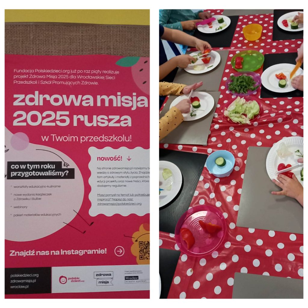25 listopada we wszystkich grupach przedszkolnych odbyły się warsztaty edukacyjno - żywieniowe realizowane w ramach projektu ZDROWA MISJA Fundacji Polskiedzieci.org.